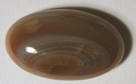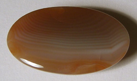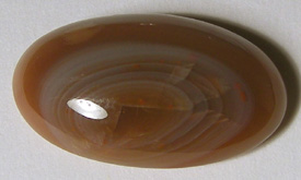 | Chatoyancy on top of stone doesn't show in picture. A few weather cracks to be expected from this large of a Lake Superior agate cab. | |
