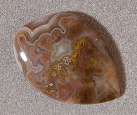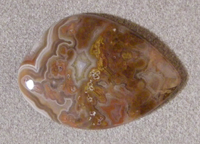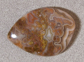 Freeform cabochon from Lake Superior agate with tubes and flowers.