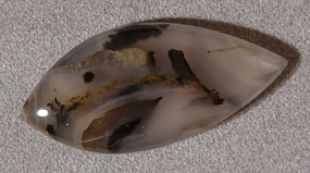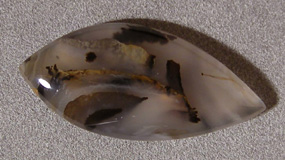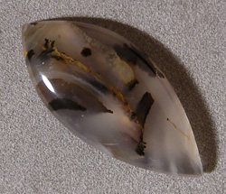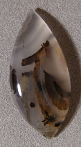 Freeform cabochon in shape of an eye from Montana moss agate.