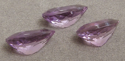 Pear cut amethyst gemstones in set of three.