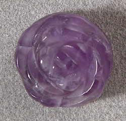 Carving of flower from gemmy amethyst with some cloudy inclusion.