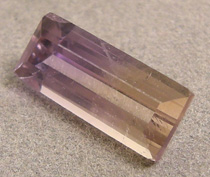 Ametrine baguette cut stone with ample gold and purple.