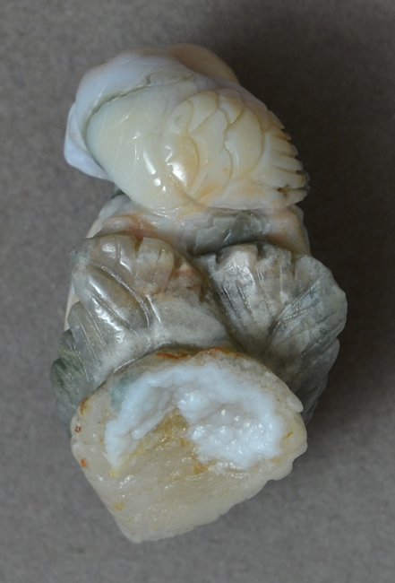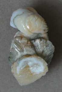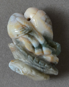 Madagascar ocean jasper carved birds pendant with hole between birds' heads for stringing. |