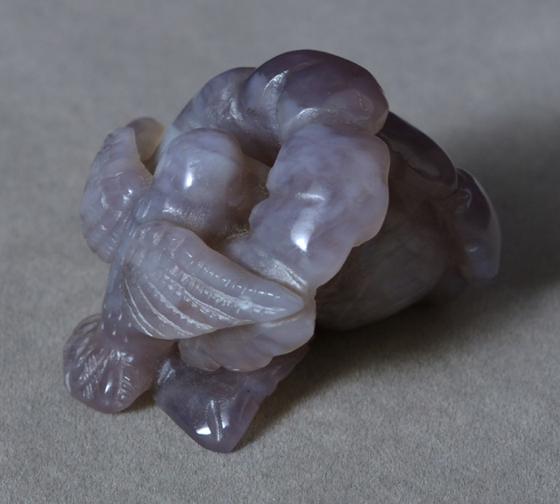 | Purple chalcedony bird and flowers | |