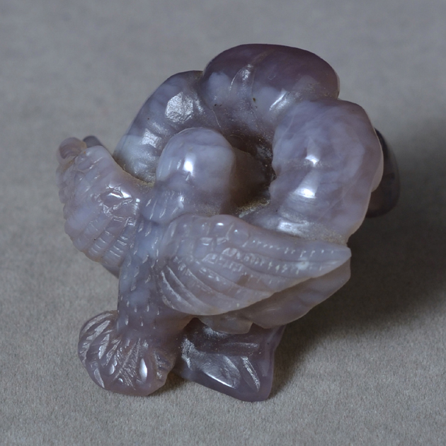 | Home>>> | Gemstone carvings>>> | Purple chalcedony bird and flowers |