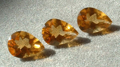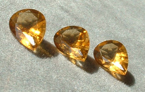 | These three Brazilian citrine pear cut stones are dark yellow to orange. Stones are very clean. Price is for all three stones. |