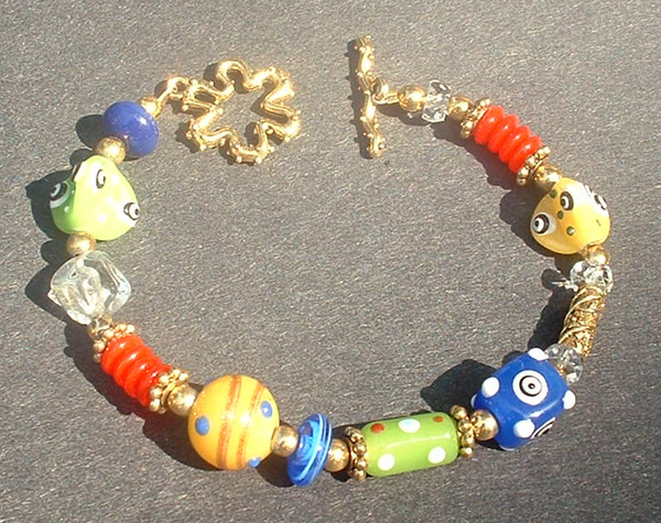 Art glass beaded bracelet. 7 1/4 inches in length.
