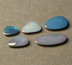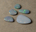 Australian opal over ironstone boulder doublets. The rare black opal is from the Mintabie mine which has been closed for over two years. Weight: 5 1/2 to 6 carats per group. | |||