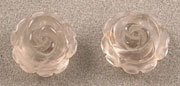 Turtles, frogs and roses carved from rose quartz and radiated quartz. | ||