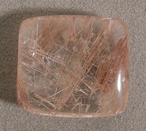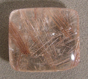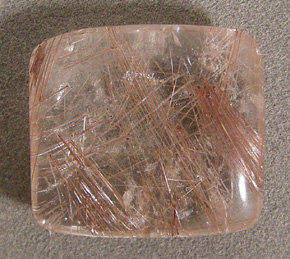 | This rutilated quartz rectangle cabochon is cut the same on both sides in pillow shape. | |