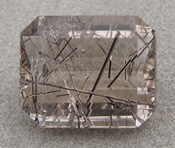 ![]() Emerald cut quartz with tourmaline rutiles. |