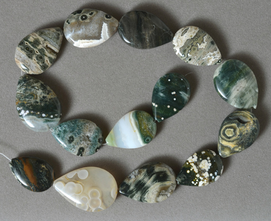 | 33mm flat pear shaped beads from Madagascar ocean jasper. |