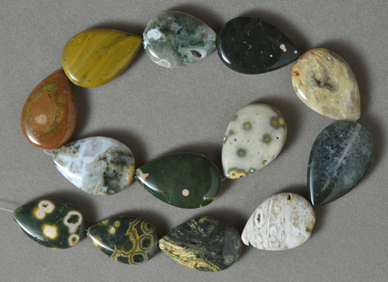 | Larger flat pear shaped beads from Madagascar ocean jasper. |