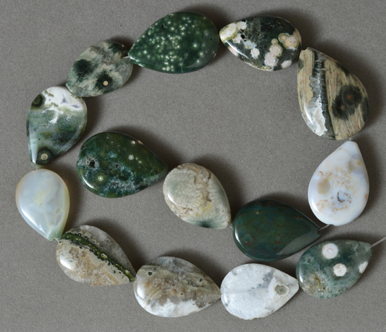 | More medium sized flat pear beads from Madagascar ocean jasper. |