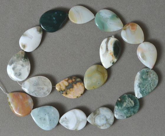 | Smaller and more uniform sized Madagascar ocean jasper flat pear shaped beads. |