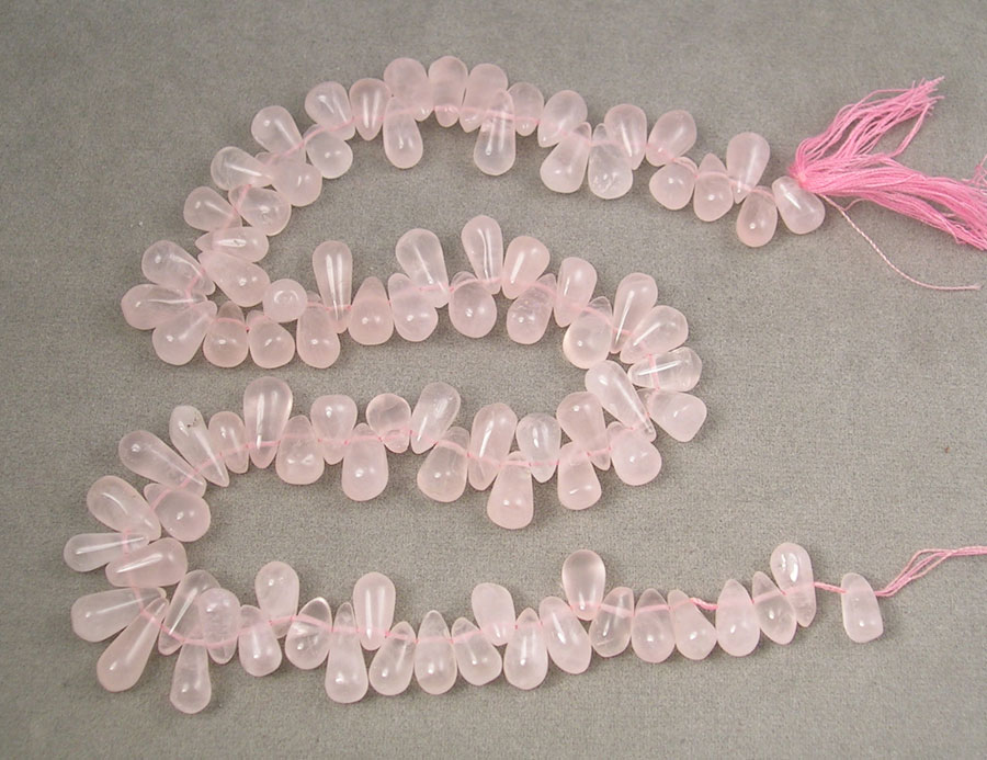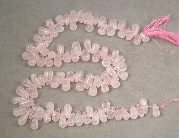 | Strand of rose quartz side drilled teardrops (briolettes.) |