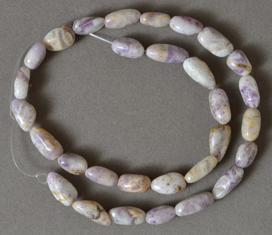 Longer sugilite tumbled nugget beads in purple and lavender colors.